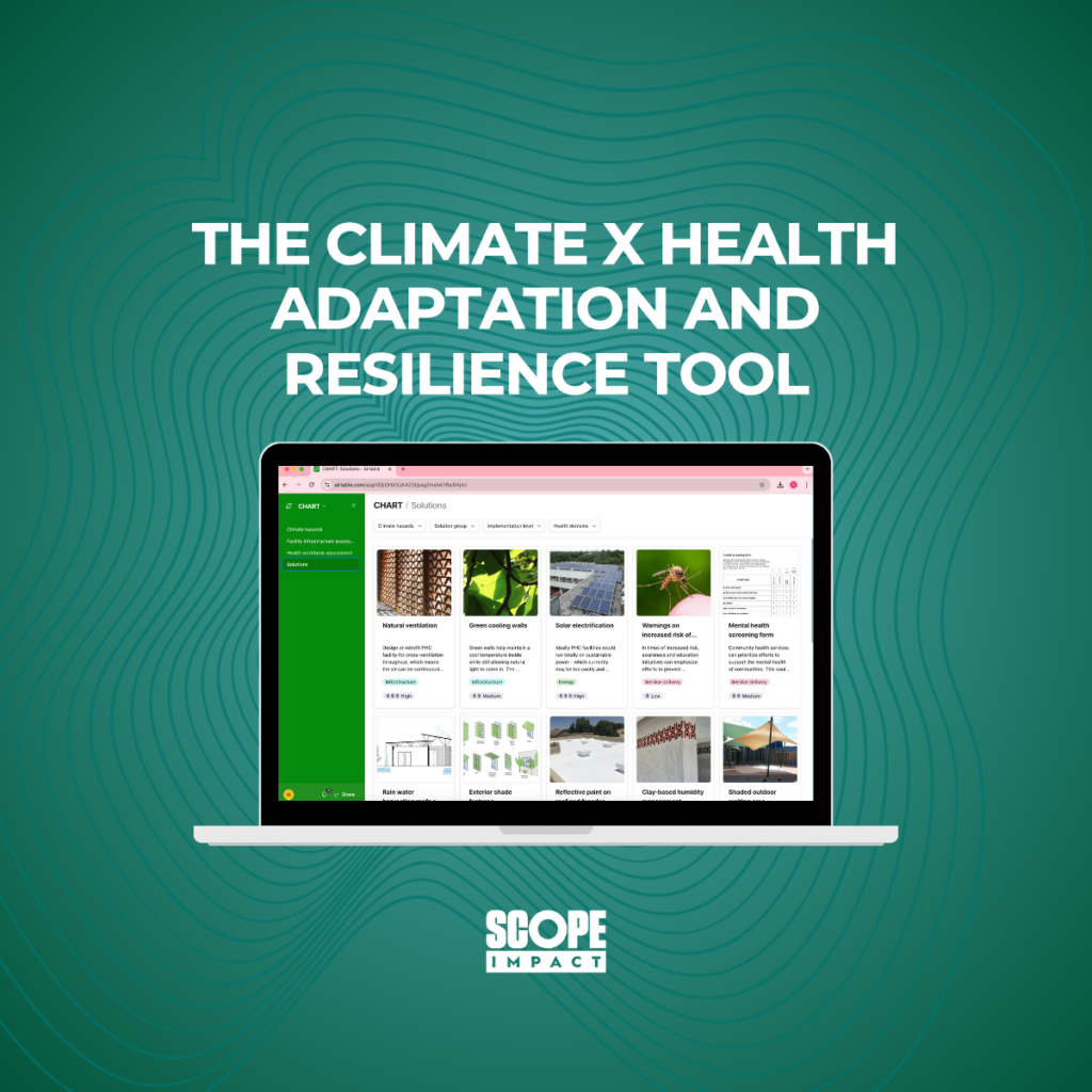 Scope Impact is thrilled to announce the launch of the Climate x Health Adaptation and Resilience Tool (CHART), an innovative digital platform designed to address the growing health challenges posed by climate change. The tool aims to support local primary healthcare and community actors to understand their risks and plan for interventions to protect the health of those most vulnerable. This pioneering tool will first focus on protecting maternal, newborn, and child health from heat stress, and will be launched in India and Kenya.